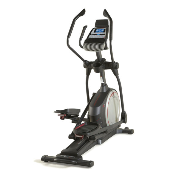 The Endurance 720 E Elliptical Trainer is upgraded from its predecessor, the 420 E. Its front drive commercial gauge solid steel construction is improved by its 20” power adjustable stride, 20lb effective inertia enhanced flywheel and 0-20 degree adjustable power ramp. Alongside that, the Digital Silent Magnetic Resistance™ can be adjusted from 1-20% to suit each workout. Choose from 24 pre-set workout apps and have your readings monitored throughout each training session via the EKG Grip Pulse feature, which will transfer the data over to the 5” backlit iFit display (with priority display) for analysis by the user. The Endurance 720 E is iFit® Bluetooth Smart (BLE) enabled, allowing you to gain access to a new workout every day, automatically track your progress, replicate real-life runs with Google Maps™, compete with your friends, and custom-tailor your training to your specific goals (30 Day iFIT Family Subscription Included). Meanwhile, stay entertained and motivated throughout your workout by taking advantage of the iPod compatible audio and 2 – 2″ speakers. For comfort, there are soft touch upper body grips, oversized levellers and oversized, cushioned pedals to make each workout as efficient as possible. When it comes to transportation, the front mounted transport wheels make manoeuvring your machine easier than ever. Other integrated features include a tablet holder (tablet not included), water bottle holder, USB charging station and a Coolaire workout fan to improve cardio endurance.